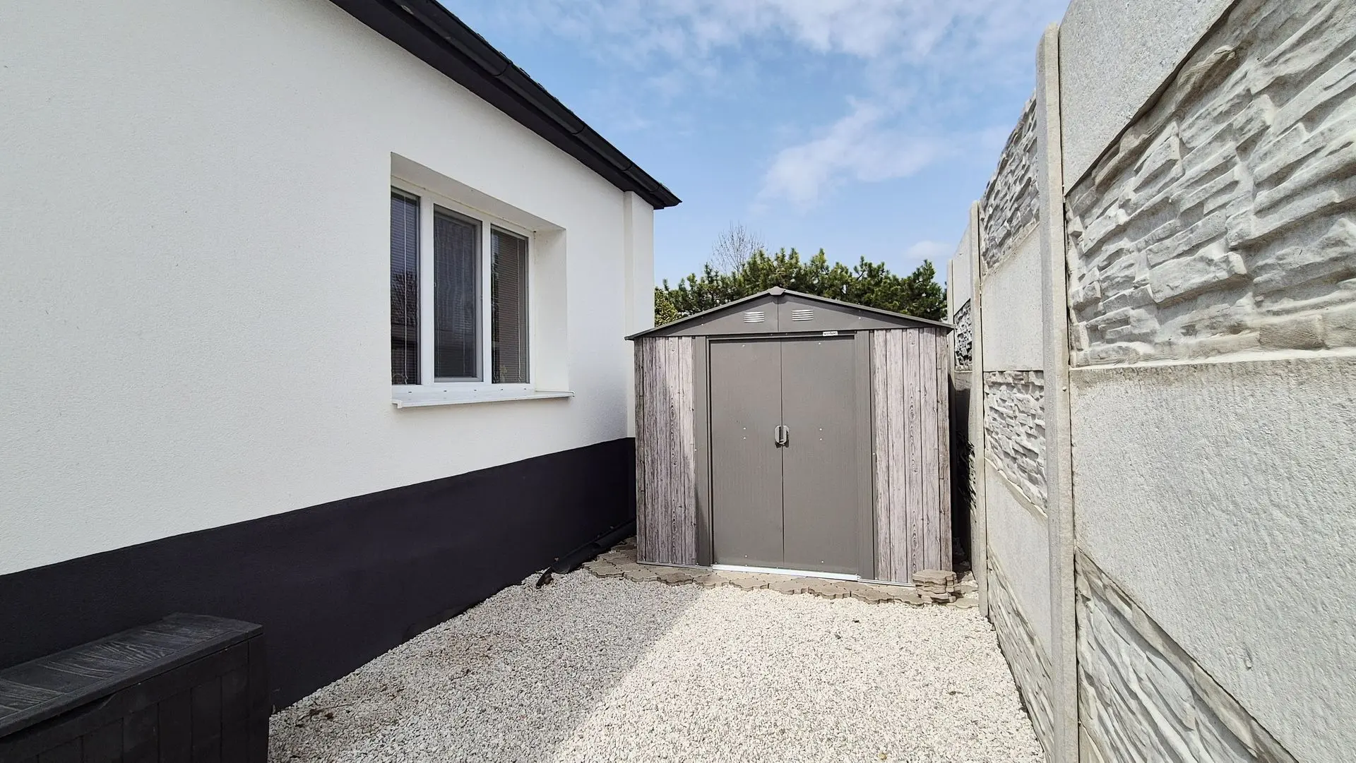 Pozemok je rovinatý, na pozemku je záhradný domček, terasa s posedením, parkovanie pre dve autá